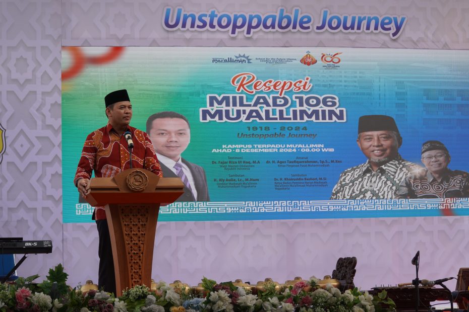 Mu’allimin, Bantul – Milad 106 Mu’allimin mengusung tema “Unstoppable Journey” merupakan momen dimana dalam perjalanannya, Madrasah Mu’allimin Muhammadiyah mendapatkan suntikan semangat untuk terus berjalan dan tak terbendung sampai kapanpun. Dalam sambutannya, H Aly Aulia Lc… Resepsi Milad 106, Direktur Mu’allimin ; “Menyongsong Indonesia Emas, Mulai Persiapkan Kader-Kader Terbaik”