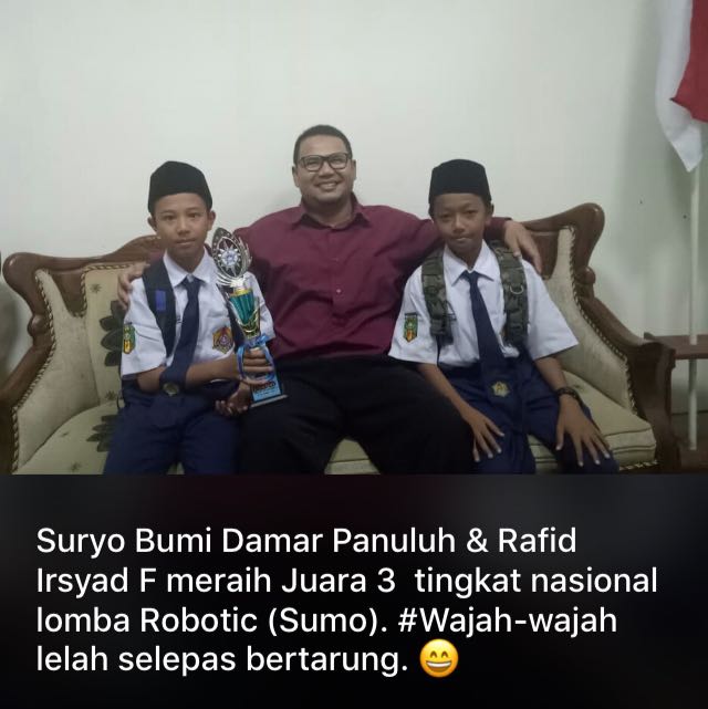 Selamat atas penghargaanmu juara 3 tingkat nasional. Lebih dari hebat, untuk anak yang baru dua bulan di Pondok Muallimin. Janjimu buat ibu, kamu lunasi sebelum waktunya.