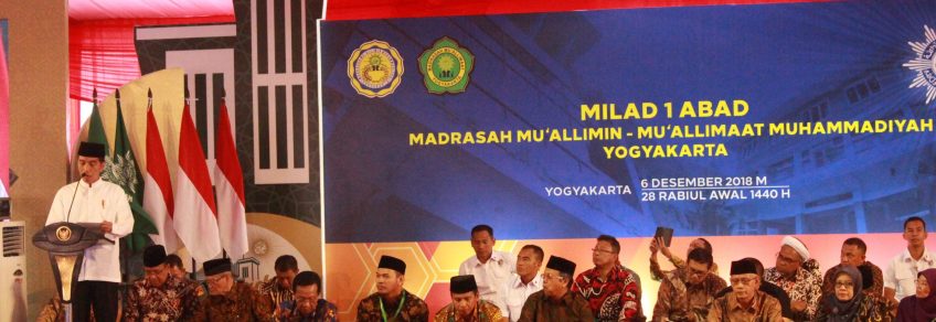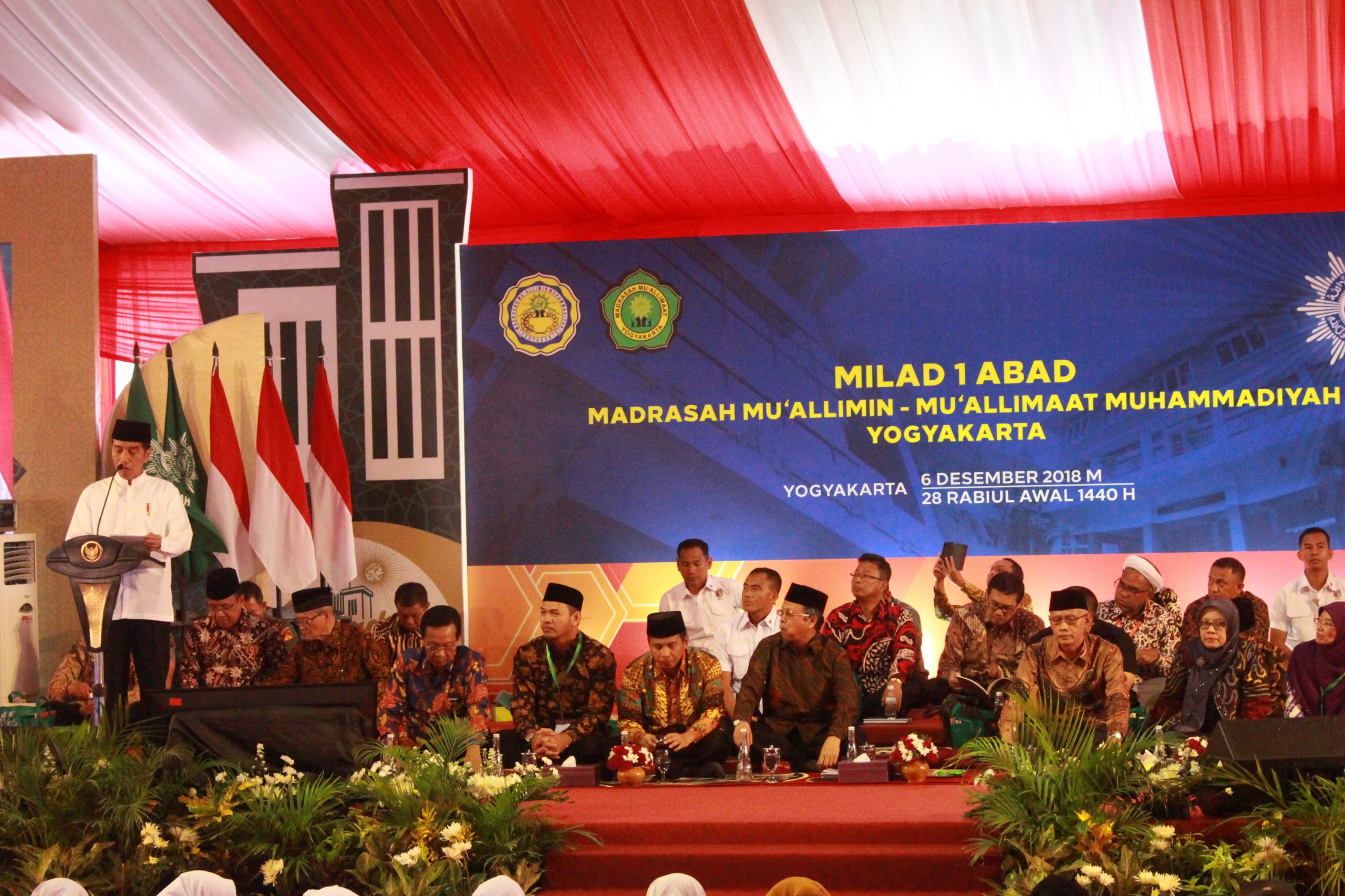 Presiden Joko Widodo (Jokowi) menghadiri peringatan Milad Satu Abad Muallimin-Muallimat Muhammadiyah di Yogyajarta, Kamis (6/12/2018). Di hadapan para siswa, Bapak Presiden banyak memberikan penjelasan akan arti penting pembangunan infrastruktur yang dia lakukan pada empat tahun pertama menjadi presiden.