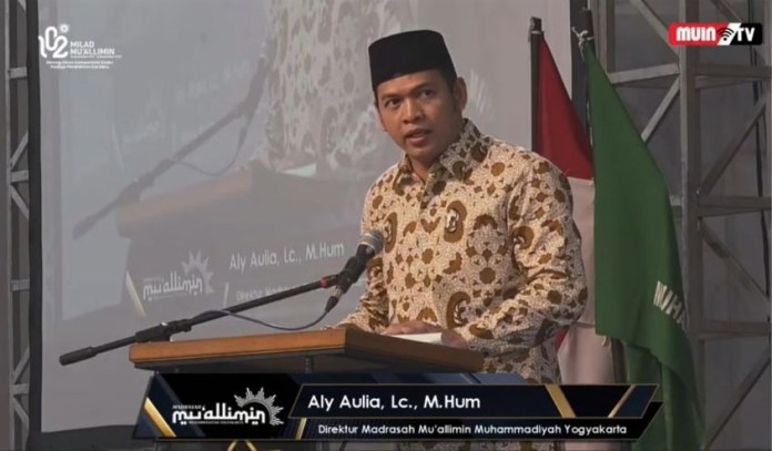 Aly Aulia, Direktur Madrasah Mu’allimin Muhammadiyah Yogyakarta, dalam kata sambutannya menyampaikan bahwa usia 102 tahun Mu’allimin harus kita syukuri. Di balik musibah pandemi harus ada lompatan pembaharuan untuk mencetak kader yang memiliki karakter dan kompetensi keilmuan, profesional, sosial kemanusiaan, kepribadian, gerakan, dan multidimensional.