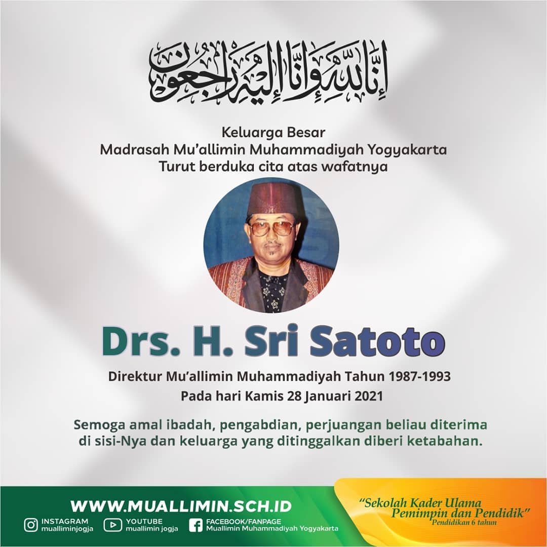 Keluarga besar Madrasah Mu'allimin Muhammadiyah Yogyakarta turut berduka cita yang sedalam-dalamnya atas wafatnya bapak H. Sri Satoto pada hari Kamis 28 Januari 2021.