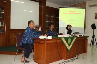 Pengawas yang mulai bertugas di Kemenag kota Yogya November 2015 itu menyampaikan agar seluruh pegawai kependidikan di lingkungan Mu’allimin untuk selalu menjaga dan meningkatkan prestasi kerja dengan profesional yaitu menjalankan Tupoksi ( Tugas pokok dan fungsi ) di setiap unit kerja masing masing. Setelah menuntaskan Tupoksi masing masing baru ikut membantu unit lain.