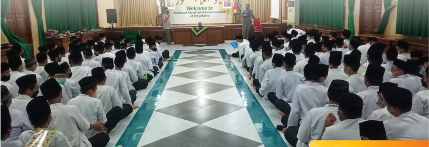 Pemateri pertama pada kegiatan ini, yaitu Ustadz Sanusi,S.H.I menyampikan materi tentang Ke-Mualliminan yang membahas secara umum sejarah perkembangan Madrasah Mu’allimin dari zaman ke zaman. Mu’allimin yang dahulunya bernama Qismul Arqa pada tahun 1918 telah ditetapkan sebagai sekolah kader persyarikatan pada kongres Muhammadiyah ke-23, tepatnya pada 19-25 Juli 1934 di Yogyakarta. Selanjutnya Mu’allimin dan Mu’allimat dikelola langsung oleh Pimpinan Pusat Muhammadiyah ditetapkan pada tahun 1939. Dengan tujuan awal didirikanya Madrasah Mu’allimin yaitu untuk mencetak mubaligh, guru dan pimpinan Muhammadiyah. Beliau menyampaikan untuk menjadi kader Muhammadiyah dan pemimpin di masa depan harus memiliki kemampuan komprehensif dan apabila ingin sukses di Mu’allimin harus memiliki hati yang bersih, niat yang tulus dan ikhlas, senantiasa menggunakan masa muda dan fokus mencari ilmu, memiliki kemampuan dalam memanajemen waktu, qana’ah dan sabar serta memakan makanan yang halal.