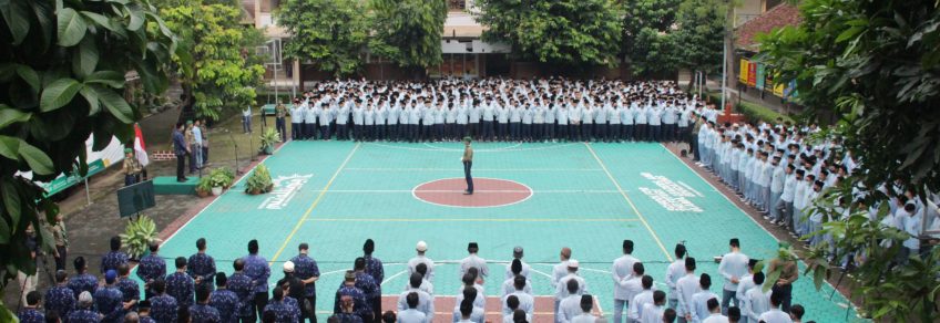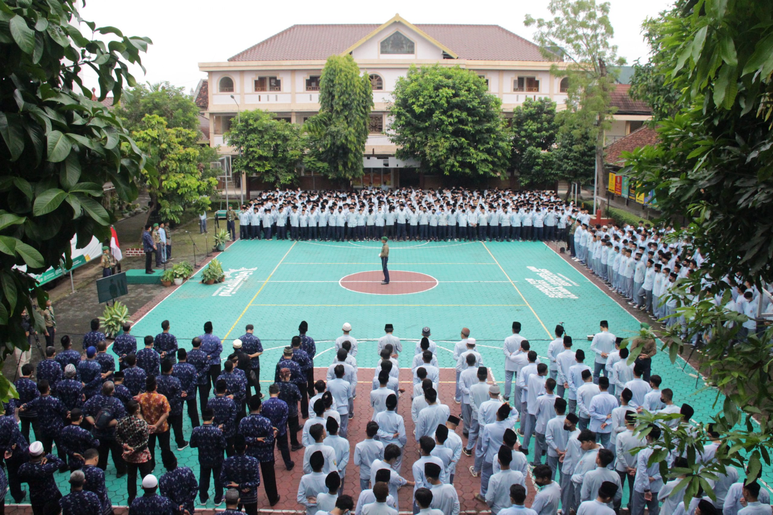 Mu'allimin Yogyakarta - Mengawali hari pertama masuk sekolah, Madrasah Mu'allimin Muhammadiyah mengadakan upacara syawal yang dihadiri oleh seluruh siswa tingkat 1-5 secara offline serentak dari Kampus Induk dan Kampus Terpadu Mu'allimin.