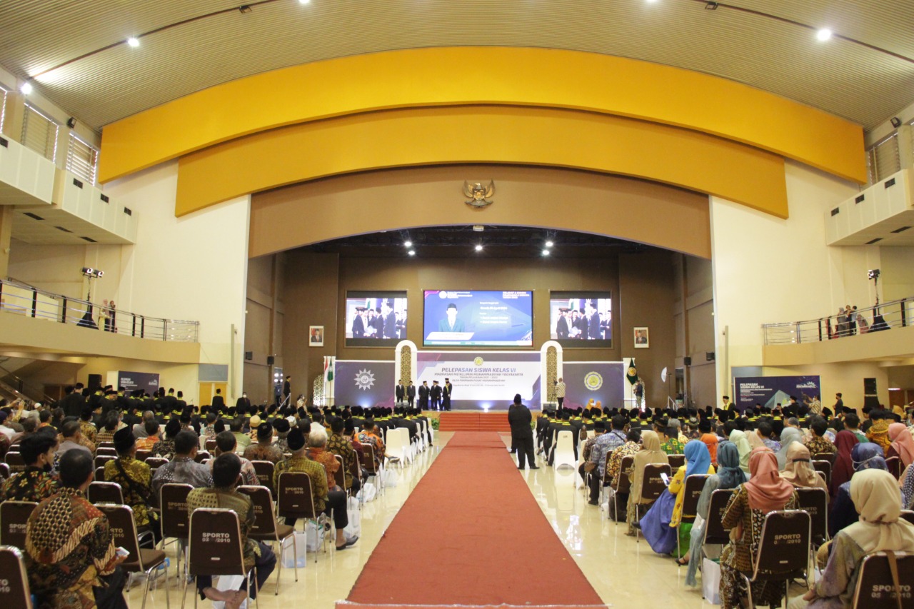 Mu’allimin Yogyakarta - Madrasah Mu'allimin Muhammadiyah Yogyakarta menggelar acara tahunan berupa pelepasan atau wisuda bagi siswa kelas XII di Sportorium Universitas Muhammadiyah Yogyakarta, Ahad (12/6). Acara diikuti oleh 187 wisudawan yang berasal dari 22 propinsi di Indonesia, dengan rincian 180 siswa mengikuti secara offline, sementara 7 siswa lainnya menggunakan tautan online.