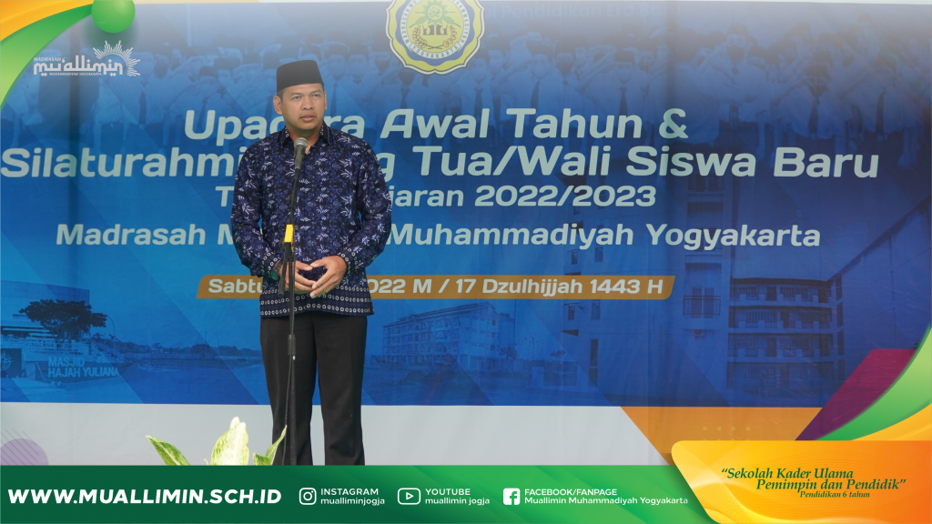 Mu’allimin Yogyakarta – Sabtu 16 Juli 2022M / 17 Dzulhijjah 1443H Madrasah Mu`allimin Muhammadiyah Yogyakarta resmi memulai tahun ajaran baru 2022/2023, yang ditandai dengan berakhirnya masa kegiatan iduladha bagi seluruh siswa yang dilaksanakan di tempat tinggal masing-masing. Dengan dimulainya tahun ajaran baru, para siswa dan ustadz resmi memulai kegiatan mereka di madrasah, baik yang bersifat akademis atau non-akademis dalam miliu pendidikan Madrasah Mu`allimin Muhammadiyah Yogyakarta. Hal ini juga memulai disiplin, dan segala sesuatu yang berkaitan dengan pembelajaran di madrasah ini.