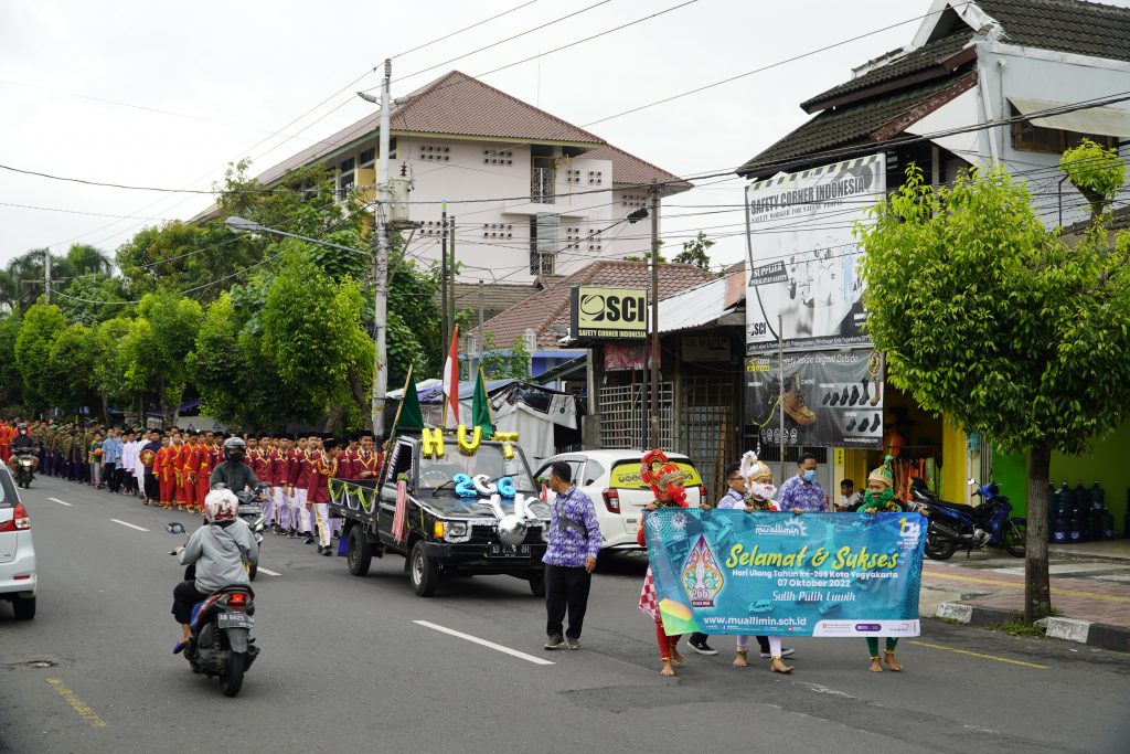 Mu'allimin Yogyakarta - Memperingati HUT Kota Jogja ke 266, Madrasah Mu'allimin Muhammadiyah Yogyakarta turut memeriahkan perayaan HUT kota tercinta itu dengan berkontribusi menurunkan siswanya untuk mengikuti karnaval pada tingkat Kapanewon yang diadakan pada Kamis, (06/10) di area Kapanewon Wirobrajan. Sebanyak lebih dari 150 siswa Tsanawiyah Mu'allimin turut hadir mengikuti acara karnaval budaya.
