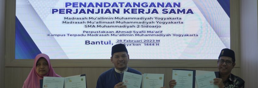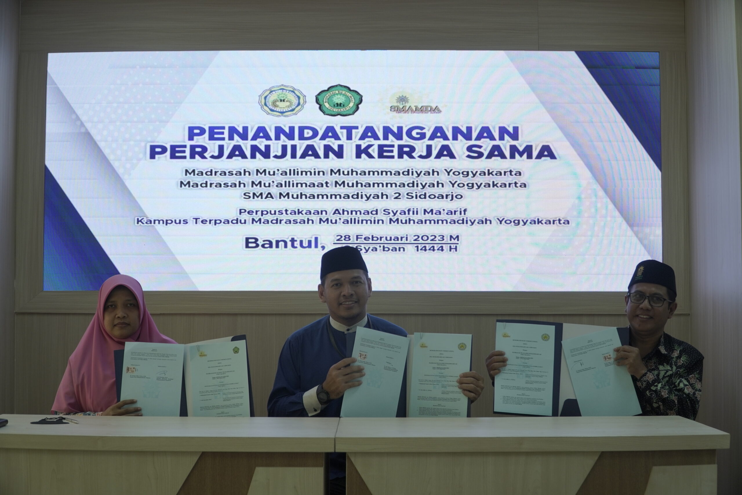 Selasa, (28/2) bertempat di Perpustakaan Ahmad Syafii Maarif telah dilakukan penandatanganan perjanjian kerja sama alias memorandum of understanding (MoU) yang ditandatangani secara langsung oleh Direktur Mu'allimin (Ust H Aly Aulia, Lc MHum), Direktur Mu'allimaat (Ustazah Unik Rasyidah MPd) dan Kepala Sekolah SMA Muhammadiyah 2 Sidoarjo (Ust M Zainul Arifin SKom MM).