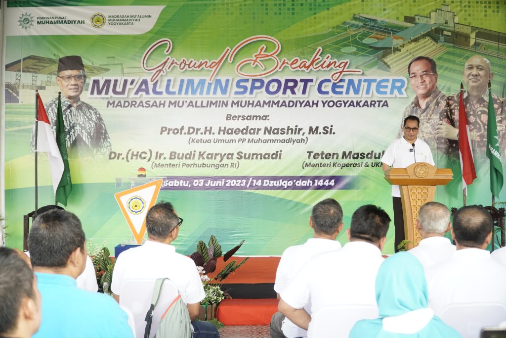 Pada Sabtu (03/06) Ketua Umum PP Muhammadiyah Haedar Nashir melakukan peletakan batu pertama pembangunan Mu’allimin Sport Center ini. Acara ini turut dihadiri Menteri Koperasi dan Usaha Mikro, Kecil, dan Menengah (UMKM) Teten Masduki, Menteri Perhubungan Budi Karya Sumadi, Direktur Madrasah Mu’allimin Muhammadiyah Yogyakarta Aly Aulia, Ketua Badan Pembina Harian (BPH) Pendidikan Ulama Tarjih Muhammadiyah Fahmi Muqoddas, jajaran Pimpinan Daerah Muhammadiyah Bantul dan Sleman, dan tamu undangan lainnya.