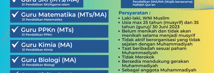 Madrasah Mu'allimin Muhammadiyah Yogyakarta membuka kesempatan untuk ta'awun (bekerja sama), dalam bidang pendidikan dengan posisi sebagai: Guru dan Musyrif.