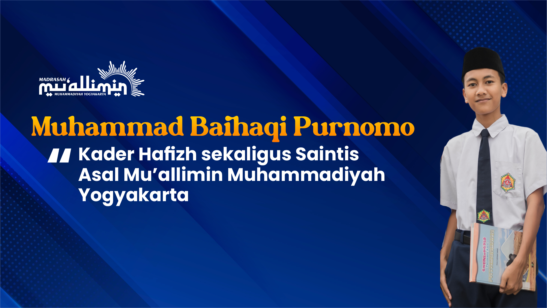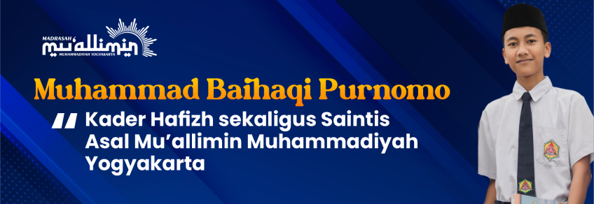 Mu’allimin Yogyakarta - Muhammad Baihaqi Purnomo, kader kelas 3 tingkat Tsanawiyah Madrasasah Mu'allimin Muhammadiyah dilahirkan pada tanggal 15 November 2008 di Yogyakarta