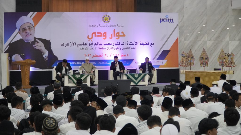 Mu’allimin Sedayu - Madrasah Muallimin Muhammadiyah kedatangan tamu kehormatan pada Ahad malam, 20 Agustus 2023. Beliau adalah Syaikh Prof Dr. Muhammad Salim Abu Ashi seorang ulama mashur dan karismatik dari Universitas Al Azhar, Kairo, Mesir yang merupakan tempat pusat studi utama ilmu literatur Arab dan ilmu keislaman dunia. Syaikh Salim (Guru Besar Ilmu Al Quran dan Tafsir Universitas Al Azhar) ini mengadakan perjalanan dakwah beliau ke berbagai tempat yang ada di Indonesia yang bertemakan “Rihlah ilmiah di Bumi Nusantara”, dan salah satu agenda kunjungan beliau adalah “Silaturahim & Dialog Interaktif’’ bersama santri di Madrasah Mu’allimin Muhammadiyah, Yogyakarta.
