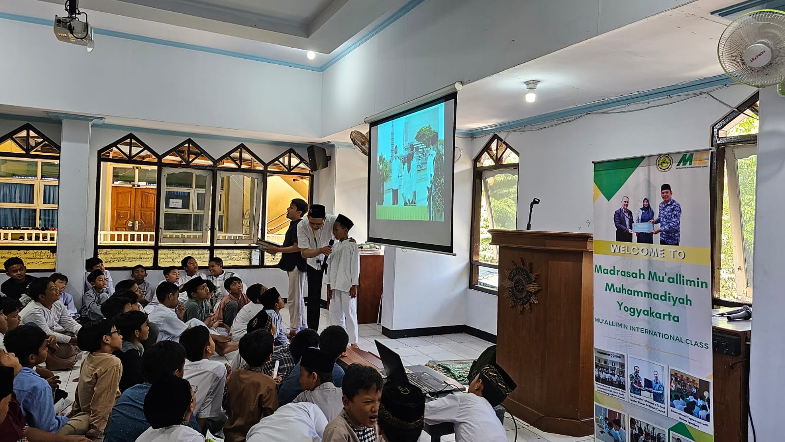 Kegiatan sosialisasi ppdb melibatkan siswa kelas 5 dan 6 yang dikumpulkan dalam satu forum untuk mendapatkan informasi-informasi dan quiz menarik dari tim ppdb Mu'allimin.