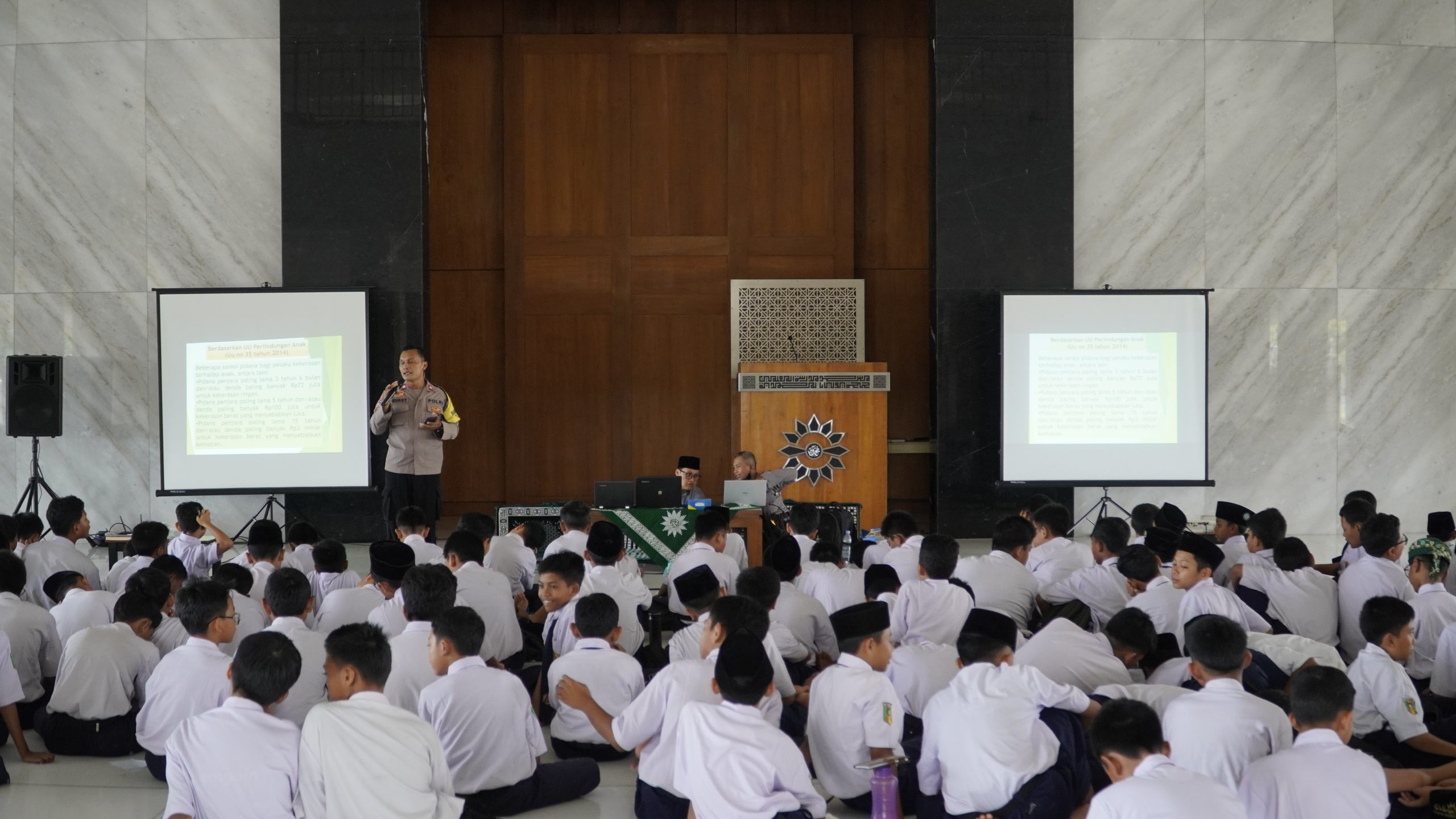 Dalam kesempatan itu Aiptu Murgyadi memberikan gambaran dan wawasan terhadap para santri agar tidak menjadi korban maupun pelaku Bullying.