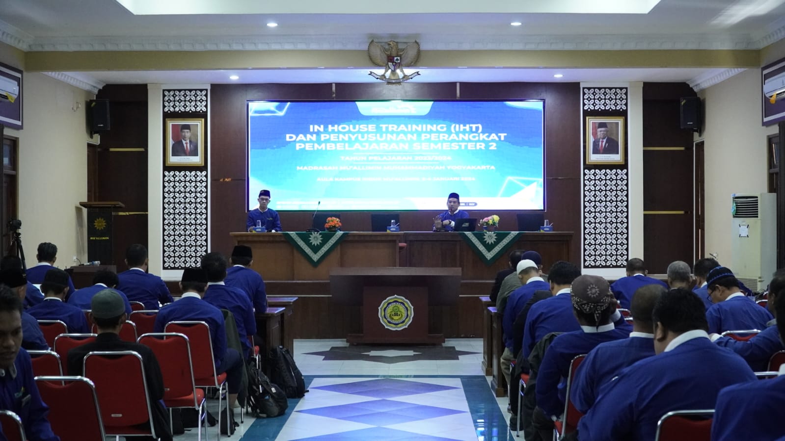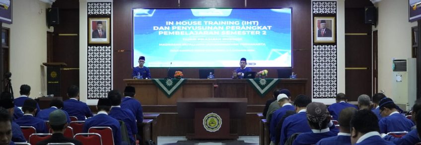 Mu’allimin, Yogyakarta - Selasa, 2 Januari 2024 telah dilaksanakan kegiatan In Haouse Training (IHT) di Madrasah Mu’allimin Muhammadiyah Yogyakarta yang dilaksanakan mulai pukul 07.30 s/d 14.00 WIB. Kegiatan ini bertujuan untuk membekali dan menambah wawasan para guru dalam mengembangkan ragam soal dalam bentuk literasi dan numerasi dengan skala tingkatanya. Kegiatan ini terdiri dari dua sesi pada sesi pertama kegiatan pembukaan dan orientasi disampaikan oleh Ust. Solikhin, M.Pd yang menekankan pentingnya dilaksanakan kegiatan IHT untuk meningkatkan pelayanan prima terhadap peserta didik dan mempersiapkan pembelajaran di semester 2 pada tahun ajaran 2023/2024 lebih siap, matang, dan professional dengan output hasil penyusunan perangkat pembelajaran baik di tingkat Mts dan MA.