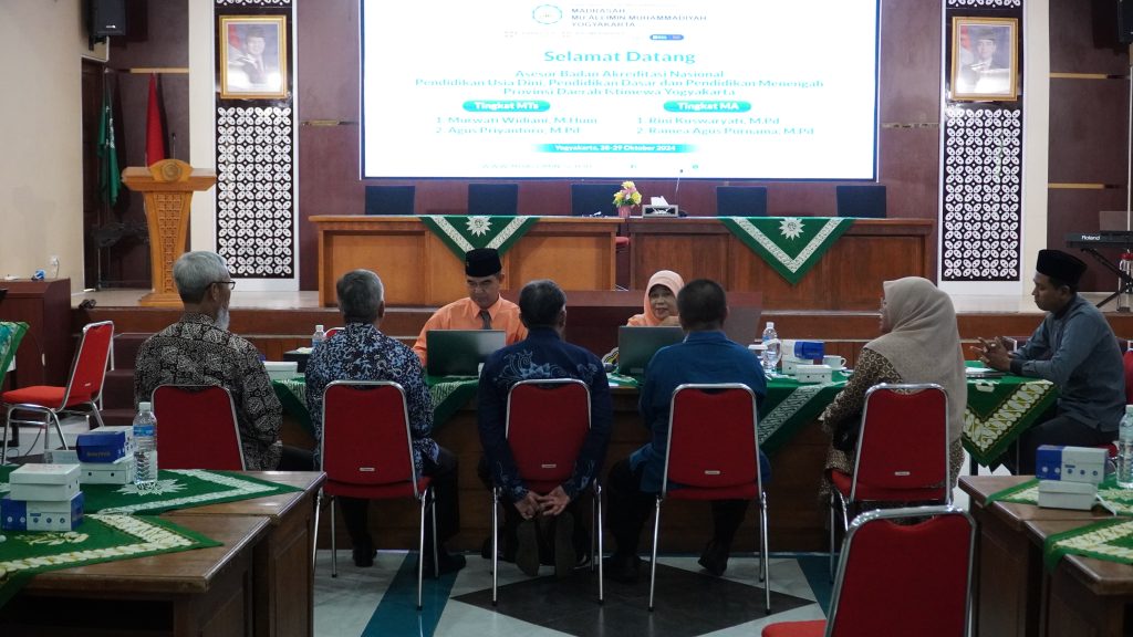 Tim asesor dari BAN PDM Provinsi Daerah Istimewa Yogyakarta yang bertugas adalah Ibu Murwati Widiani, M.Pd dan Bapak Agus Priyantoro, M.Pd selaku asessor MTs serta Ibu Rini Kuswaryati, M.Pd dan Bapak Ramea Agus Purnana, M.Pd selaku asesor MA, tiba di Madrasah Mu`allimin Muhammadiyah Yogyakarta pada pagi hari senin tanggal 28 Oktober 2024 di Kampus Induk Madrasah Mu`allimin Muhammadiyah Yogyakarta Jl. Letj.S. Parman. Mereka disambut dengan hangat oleh Kepala Madrasah, Komite, orang tua siswa, dan tenaga kependidikan serta peserta didik. Sebagai bentuk komitmen terhadap peningkatan mutu, madrasah telah mempersiapkan diri secara maksimal, baik dalam hal dokumen pendukung, sarana dan prasarana, serta berbagai aspek lainnya yang menjadi indikator penilaian dalam proses akreditasi.