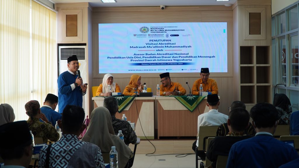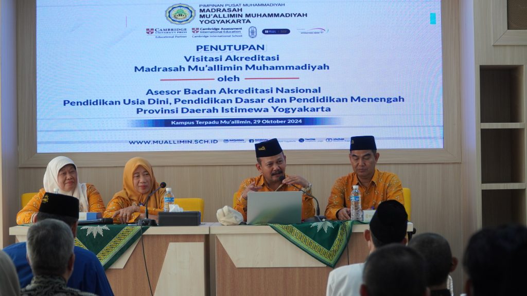 Mu`allimin (29/10/2024) Madrasah Mu`allimin Muhammadiyah Yogyakarta sukses melaksanakan kegiatan visitasi akreditasi yang dilaksanakan oleh Badan Akreditasi Nasional Pendidikan Dasar dan Menengah (BAN PDM) pada tanggal 28 - 29 Oktober 2024. Kegiatan ini merupakan bagian dari upaya keberkelanjutan madrasah dalam meningkatkan kualitas dan layanan pendidikan bagi warga Madrasah Mu’allimin Muhammadiyah Yogyakarta.
