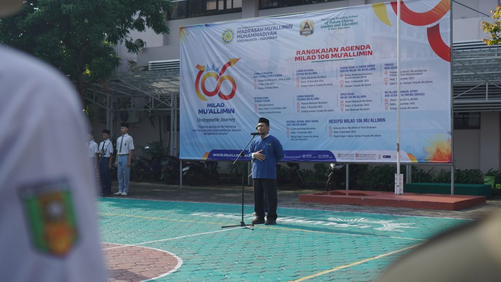 Mu’allimin, Yogyakarta – Selasa, (19/11) sehari pasca rangkaian lomba semarak Milad 112 Muhammadiyah dan Semarak Milad 106 Mu’allimiin dilaksanakan, Civitas Academica Madrasah Mu’allimin Kembali mengikuti apel akbar dalam rangka memperingati Milad 112 Muhammadiyah sekaligus persiapan pelaksanaan Penilaian Akhir Semester (PAS) dan Sumatif Akhir Semester yang rencananya diselenggarakan pada 20-28 November 2024.