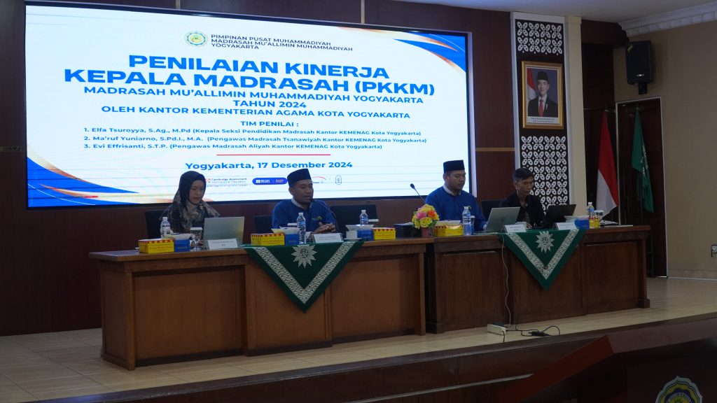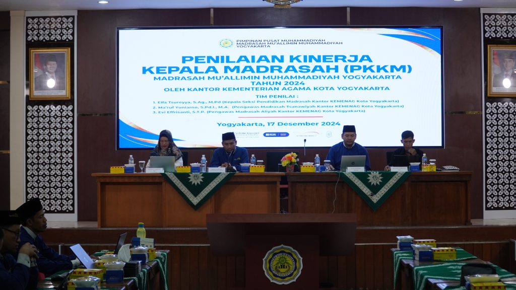 Mu’allimin, Yogyakarta - Memasuki penghujung Tahun 2024, Kepala Madrasah Mu’allimin Muhammadiyah Yogyakarta dalam hal ini Direktur Mu’allimin, H. Aly Aulia, Lc., M.Hum menjalani proses penilaian kinerja kepala madrasah yang dilaksanakan oleh Kantor Kementerian Agama Kota Yogyakarta yang dilaksanakan pada Selasa, (17/12) di Aula Kampus Induk Mu’allimin.
