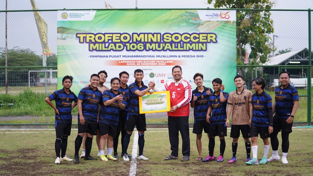 Mu’allimin, Bantul – Masih dalam rangkaian agenda Milad 106 Mu’allimin, Trofeo mini soccer perdana digelar dalam semarak Milad 106 Mu’allimin di lapangan mini Soccer kampus terpadu Mu’allimin pada Ahad, (22/12) sore. Menggandeng tim sepak bola pegawai kantor Pimpinan Pusat Muhammadiyah dan SMA Muhammadiyah 3 Yogyakarta, Trofeo dilaksanakan selama 20 menit pada setiap pertandingan. Ke-3 tim tersebut saling bertemu untuk memenangkan pertandingan dan menjadi tim paling unggul yang memperoleh juara.