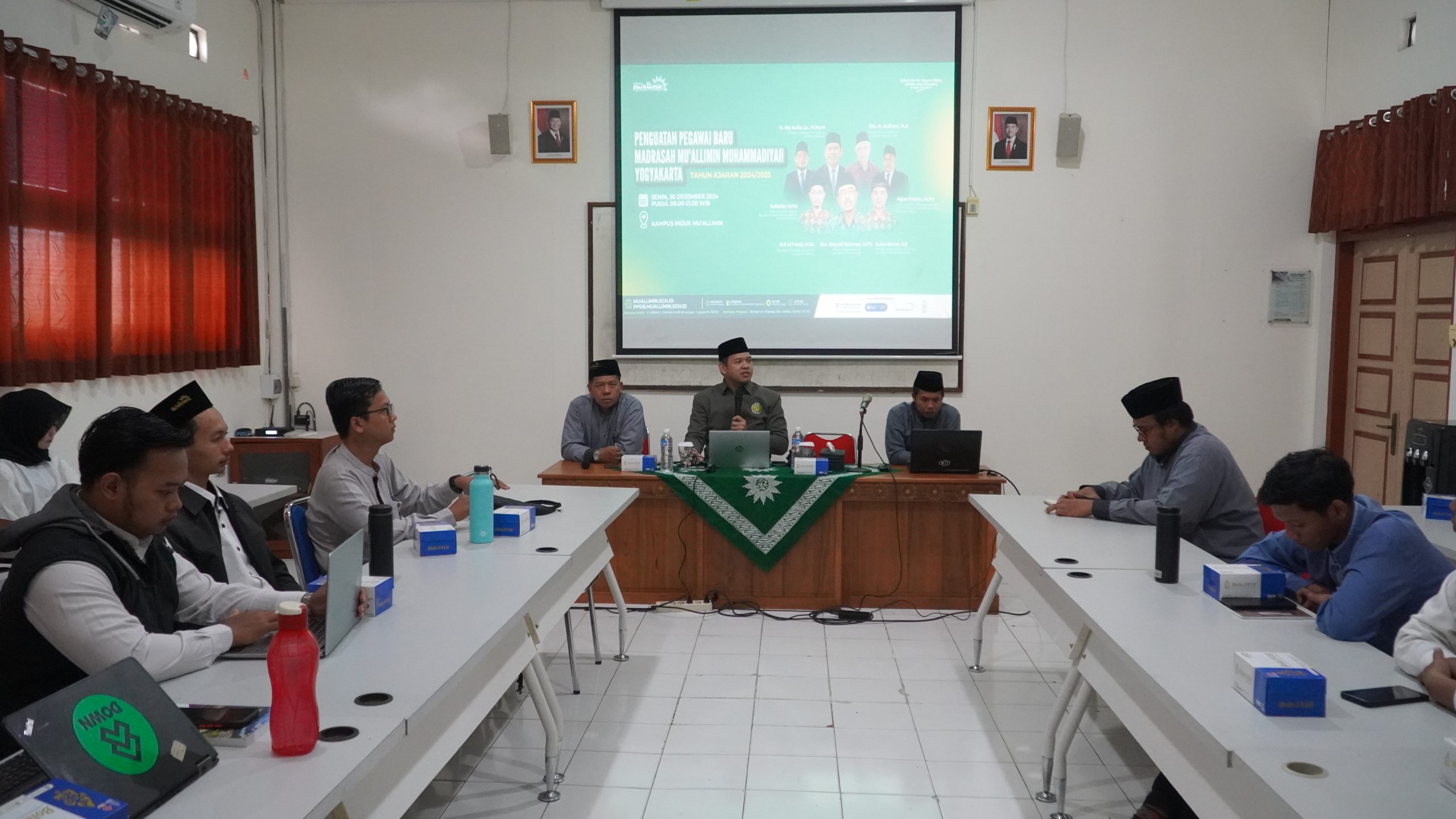 Mu’allimin, Yogyakarta - Dipenghujung Tahun 2024, sebanyak 35 pegawai baru dari unsur tenaga pendidik dan kependidikan ikuti penguatan oleh jajaran Pimpinan Madrasah Mu’allimin Muhammadiyah Yogyakarta pada Senin, (30/12) di ruang rapat lantai 2 gedung B Kampus Induk Mu’allimin.