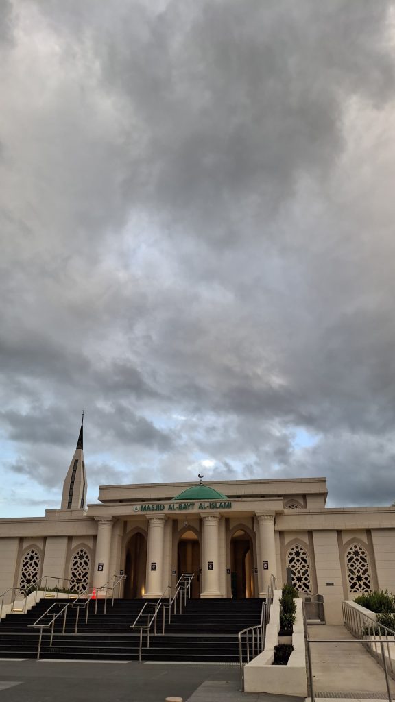 Terakhir, kami berkunjung ke Masjid Al-Bayt Al-Islami. "Masjid ini hasil perjuangan kami umat muslim di Sydney selama 25 tahun" ujar Pak Iwan. Masjid ini tampak seperti masjid-masjid daerah timur tengah. Lahan parkir masjid ini juga sangat luas dibandingkan 3 masjid sebelumnya.