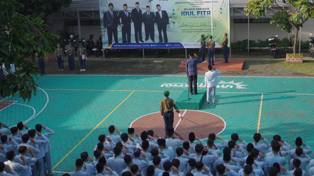 Mu’allimin, Yogyakarta — Mengawali kembali aktivitas akademik pasca libur panjang Ramadhan dan Syawal, Madrasah Mu’allimin Muhammadiyah Yogyakarta menggelar upacara bendera dan halal bihalal secara serentak di dua lokasi, yaitu Kampus Induk dan Kampus Terpadu pada Sabtu, (12/4).