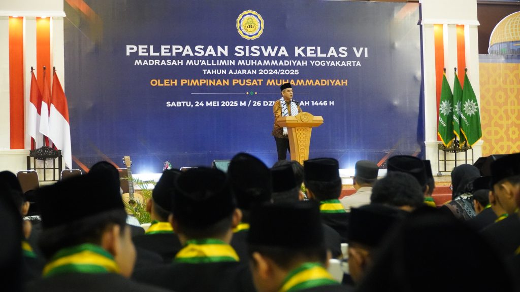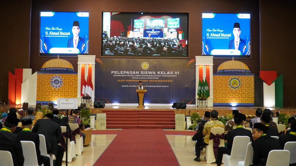 Mu’allimin, Yogyakarta — Sebanyak 209 siswa kelas VI Madrasah Mu’allimin Muhammadiyah Yogyakarta resmi dilepas dalam sebuah acara khidmat yang digelar di Sportorium Universitas Muhammadiyah Yogyakarta (UMY), Sabtu (24/5). Acara ini dihadiri langsung oleh Ketua MPR RI, Ahmad Muzani, serta Pimpinan Pusat Muhammadiyah yang diwakili oleh Prof. Muhadjir Effendy, M.AP sebagai Ketua PP Muhammadiyah Bidang Ekonomi dan Bisnis.