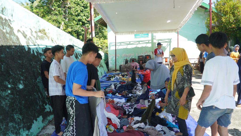 Kontribusi juga datang dari Bank BPD DIY Syariah yang menyumbangkan 25 paket sembako. Para santri juga turut mengadakan bazar pakaian layak pakai dengan harga terjangkau, hasilnya pun disalurkan kembali ke AUM lokal sebagai bentuk pemberdayaan.