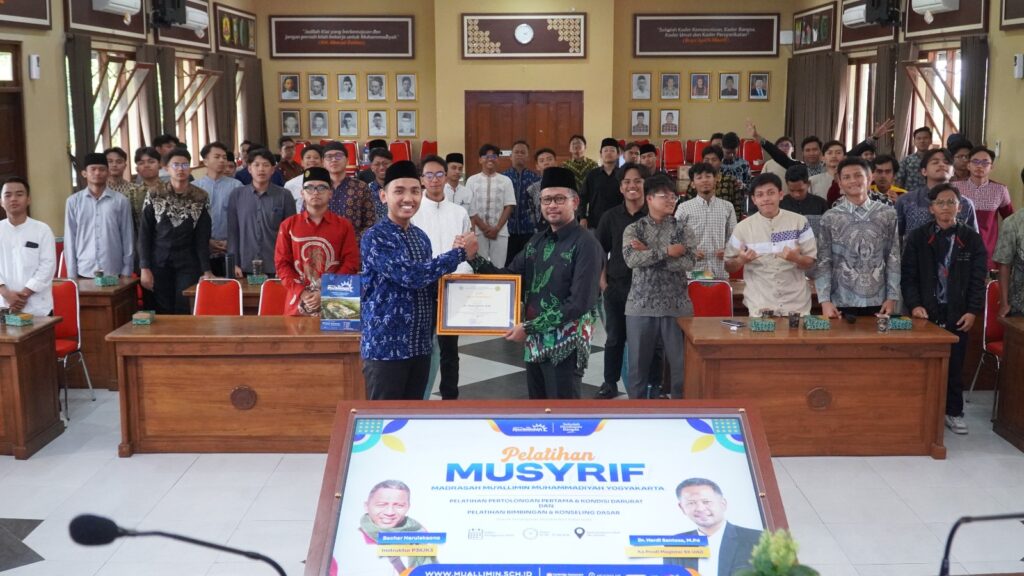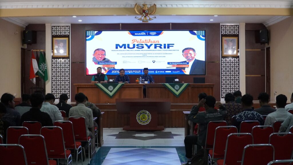 Mu'allimin, Yogyakarta – Dalam upaya menciptakan lingkungan asrama yang aman, nyaman, dan mendukung perkembangan karakter santri, Madrasah Mu’allimin Muhammadiyah Yogyakarta terus mengambil langkah konkret melalui peningkatan kompetensi para musyrif (pendamping asrama). Salah satunya dengan menyelenggarakan pelatihan Penanganan Kecelakaan dan Bimbingan Konseling Dasar pada Sabtu (31/08) di Aula Kampus Induk Mu’allimin.
