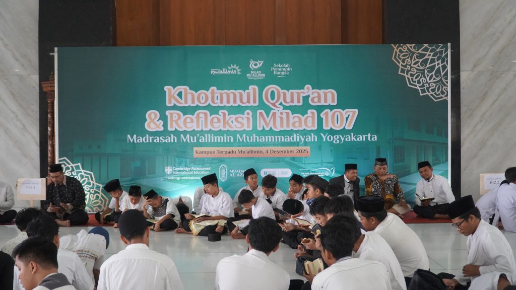 Madrasah Mu’allimin Muhammadiyah Yogyakarta kembali meneguhkan dirinya sebagai Sekolah Para Pemimpin Bangsa melalui pelaksanaan Khotmul Qur’an dan Refleksi Milad ke-107 yang digelar serentak di Kampus Induk Wirobrajan dan Kampus Terpadu Sedayu pada Kamis, 4 Desember 2025. Kegiatan ini dimulai pukul 07.00 WIB dan diikuti oleh seluruh civitas madrasah, mulai dari para santri hingga seluruh pegawai, sebagai wujud syukur atas perjalanan panjang lembaga kader persyarikatan yang telah berdiri sejak 1918.