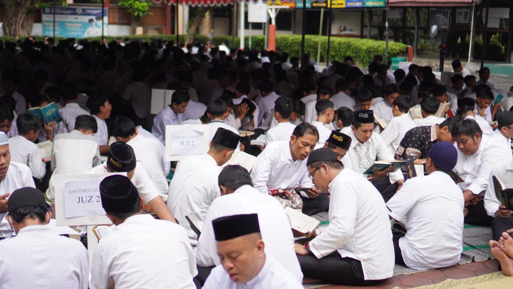 Sejak pagi, kedua kampus dipenuhi suasana khidmat. Rangkaian kegiatan Milad 107 ini diawali dengan pelaksanaan salat dhuha bersama, dilanjutkan dengan Khotmul Qur’an yang dilakukan secara berkelompok. Seluruh santri membacakan Al-Qur’an secara serempak hingga khatam sebagai simbol ketundukan, rasa syukur, dan harapan agar perjalanan Mu’allimin ke depan senantiasa diberkahi oleh Allah SWT.
